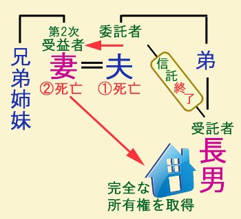 信託によって、家と土地の所有権は弟の長男に移りますが、