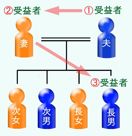 例として、最初の受益者を夫、夫死亡後の第2受益者を妻、